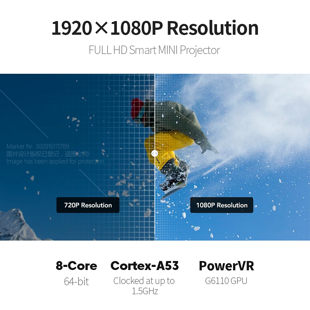 AUN Full HD DLP Projector D9 Android 7.1 (2G+16G) 4000 mAh Battery 5G WIFI 3D MINI Projector Outdo