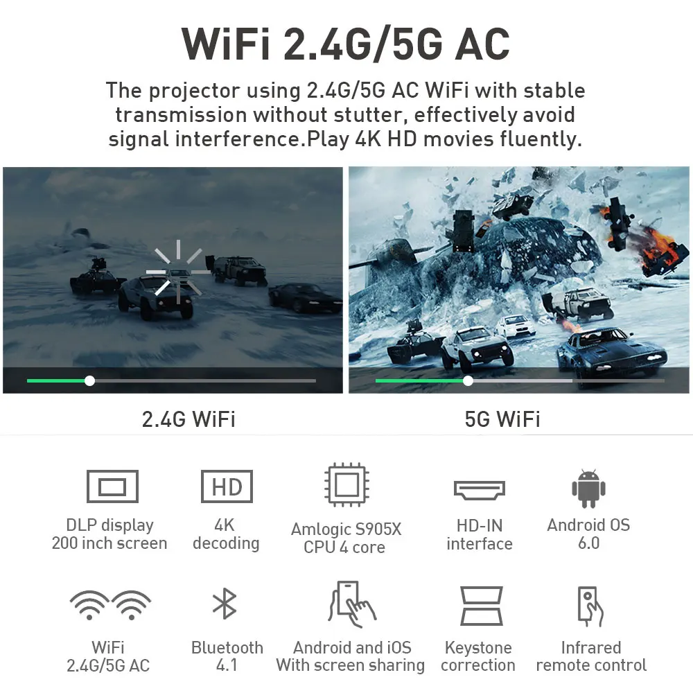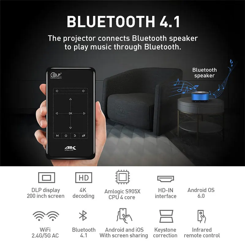 P09 4K Mini Projectors with 4000mAh battery Support Android Bluetooth Miracast Airplay Handheld Mob